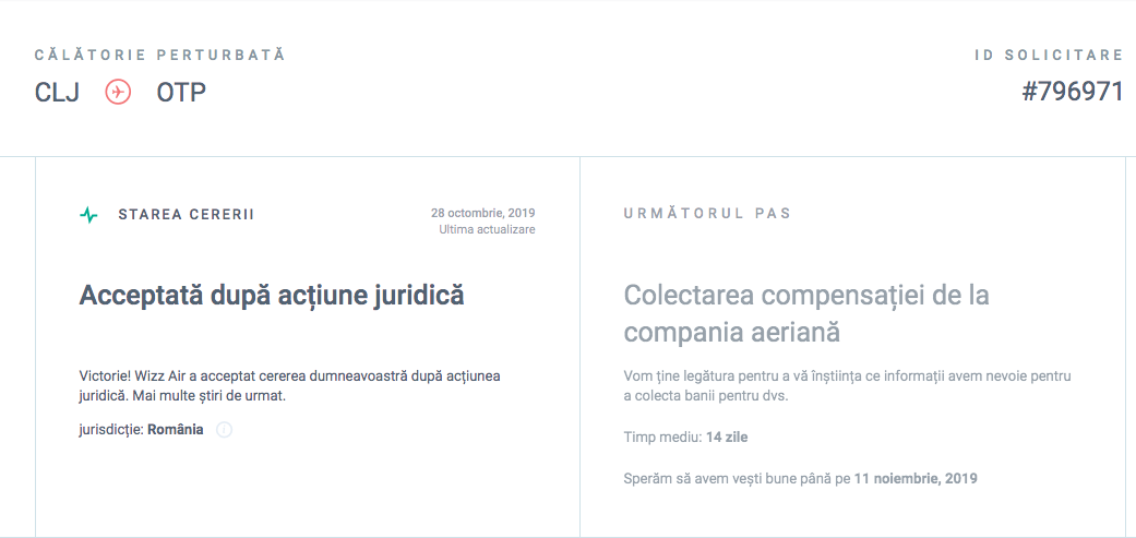 Au acționat juridic cererea (după ce au încercat să rezolve direct), mi-au comunicat că o să dureze de la câteva luni până la un an și că până în momentul respectiv, câștigaseră 98% din cereri.