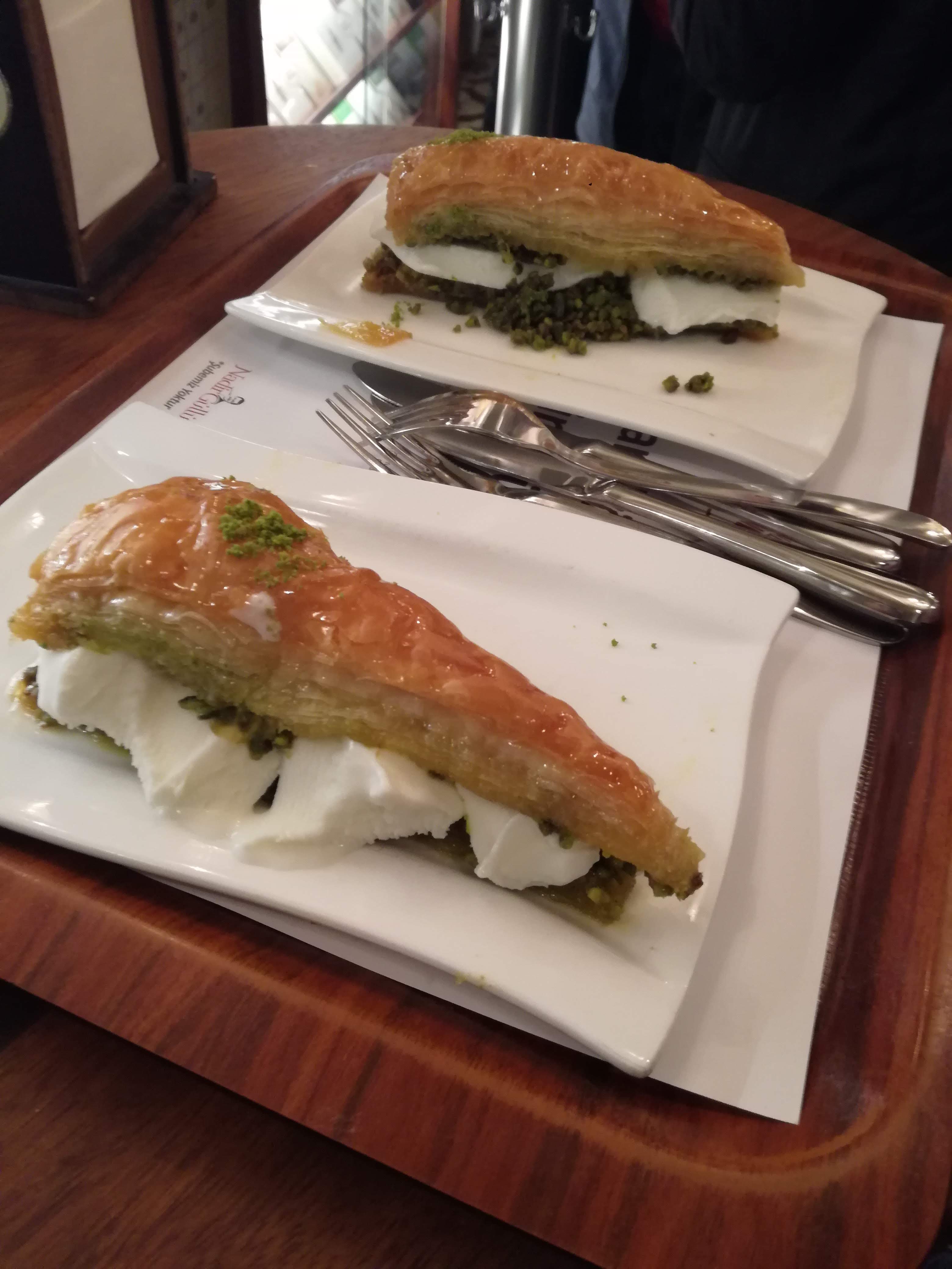 Baklava, nu știu dacă mai are nevoie de prezentare, dar un loc bun de recomandat am. În cartierul Karaköy există Karaköy Güllüoğlu, o cofetărie presupun că faimoasă, unde este veșnic aglomerat și unde am mâncat asta: