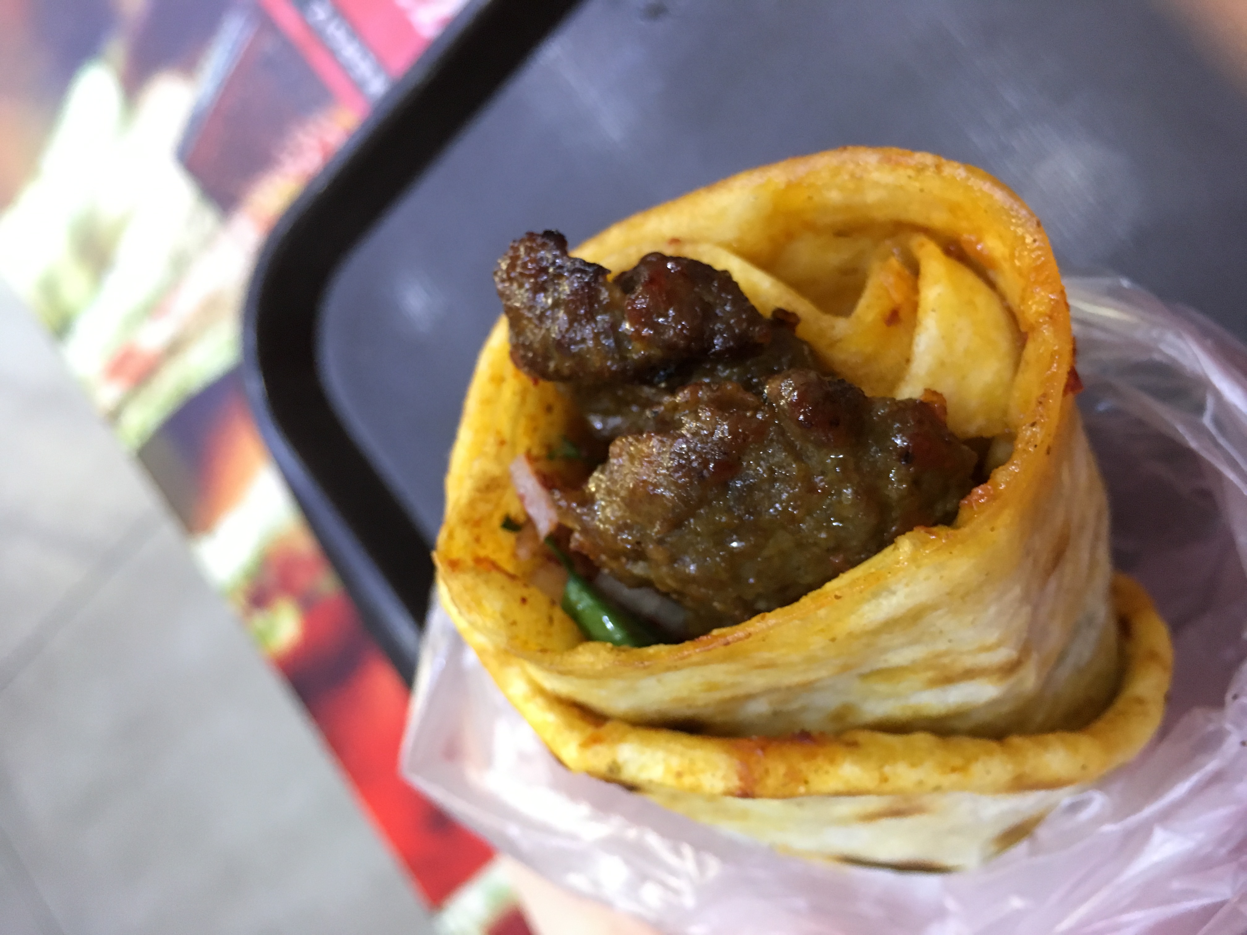 Kokoreç – intestine de miel, la rotisor. Mie îmi plac în sandviș.