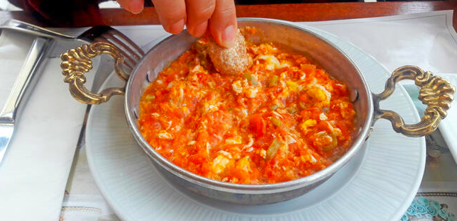 Yumurta kapana – ouă fierte, încălzite într-un sos de unt și condimente.