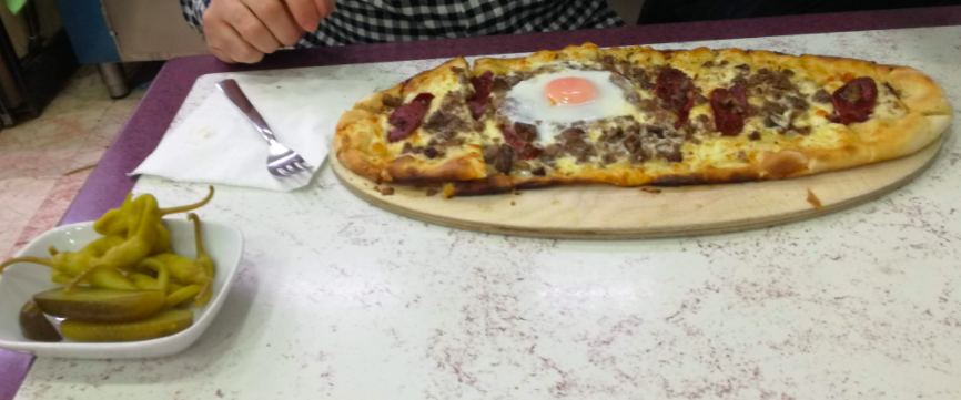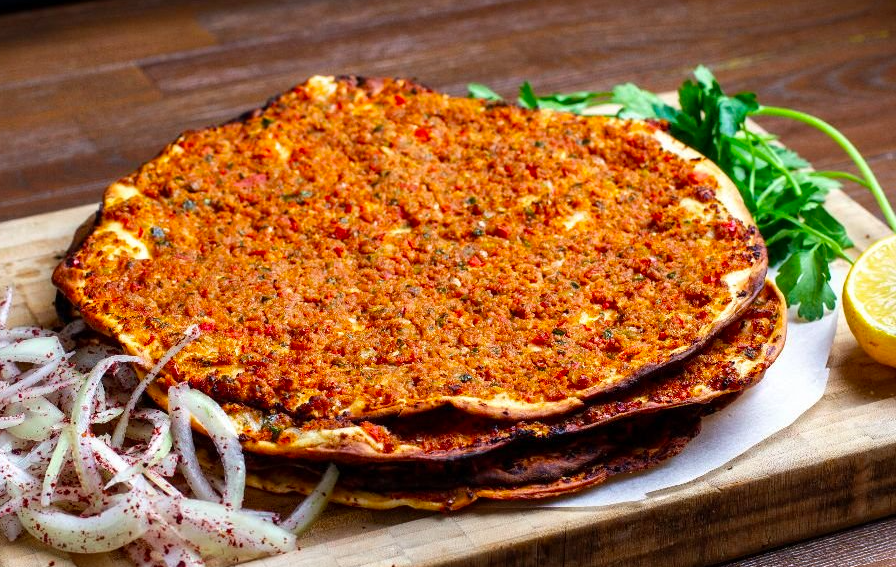 Lahmacun – pizza turcească, foarte subțire, cu carne tocată, cel mai bun cu pătrunjel și zeamă de lămâie. Mai este și etli ekmek, foarte similar, cu cașcaval deasupra.