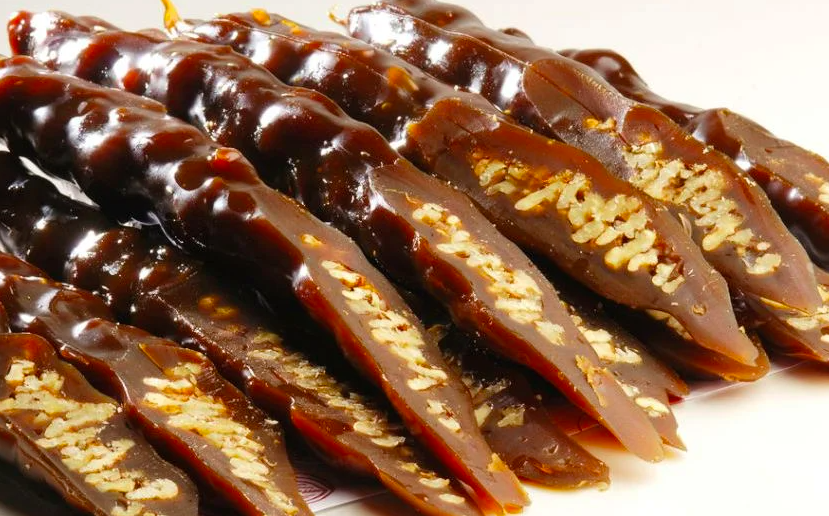 Cevizli sucuk – în traducere literală ‘cârnați de nucă’. Dacă îți plac dulciurile cu bucăți de nucă sau textura gumoasă, de jeleu, o să îți placă. Se găsesc și ambalate în magazine, și atârnate în cofetării :)).